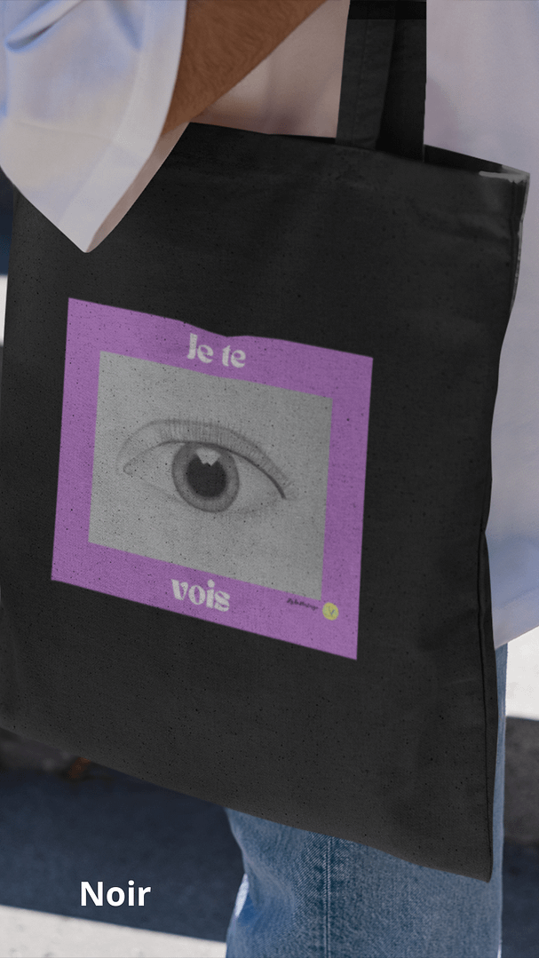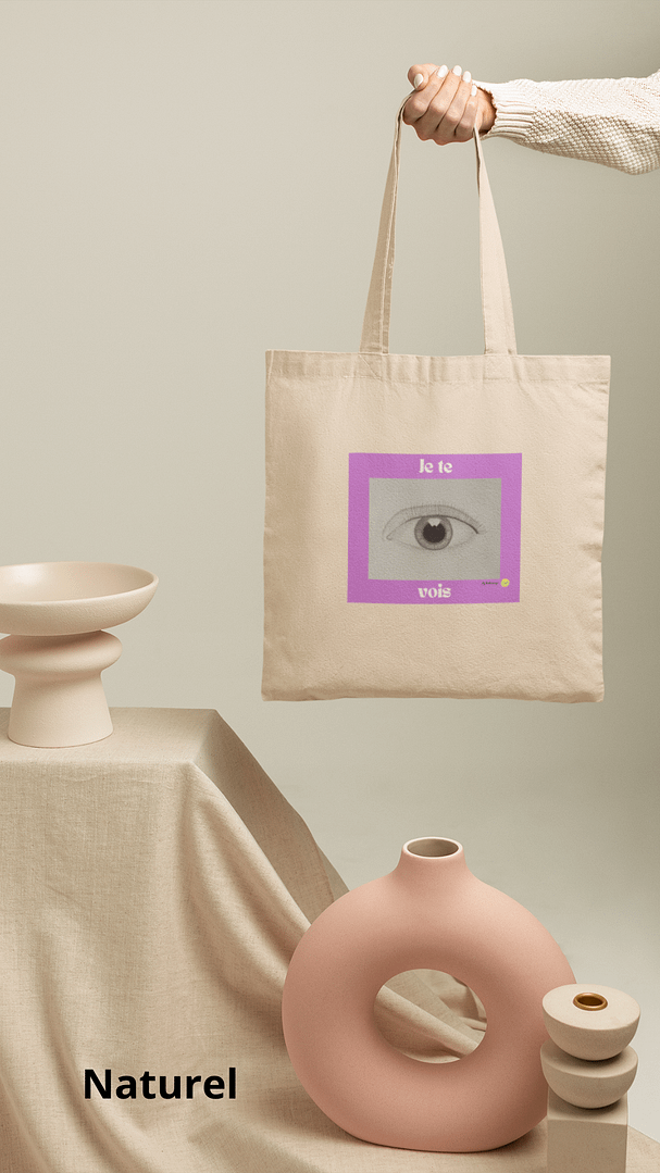 Sac 100% coton (180 g/m²), anses renforcées et grande capacité. Message inspirant “Je te vois”, qui valorise la présence et l’importance de vos émotions.