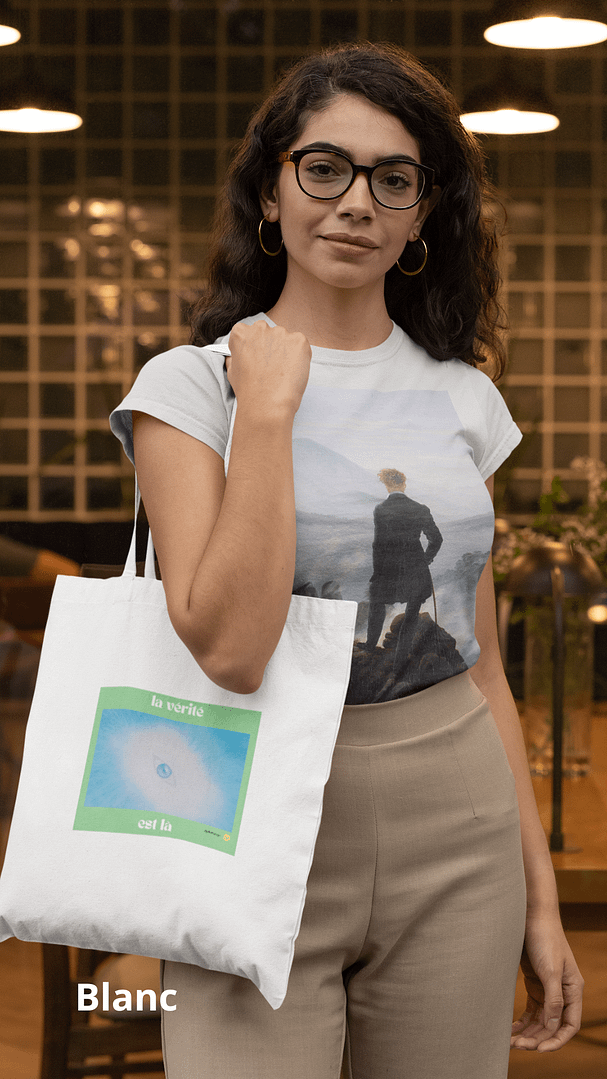 Sac coton 100% coton (180 g/m²) avec longues anses renforcées. Pratique, écologique et inspirant, orné du message “La vérité est là”. Idéal au quotidien.