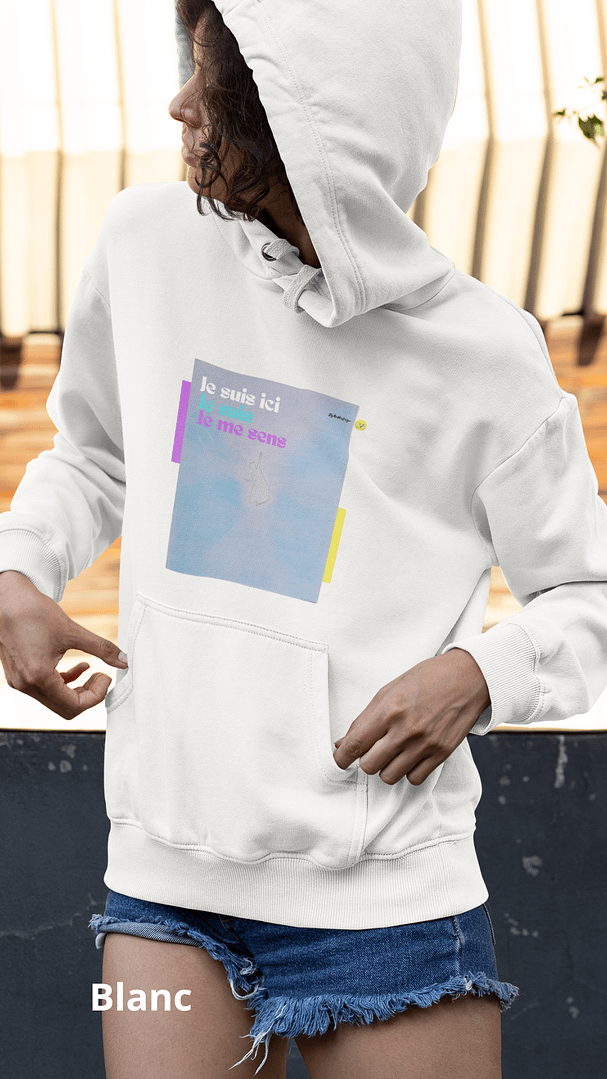 Sweat à capuche – Je suis ici. Je suis. Je me sens.
